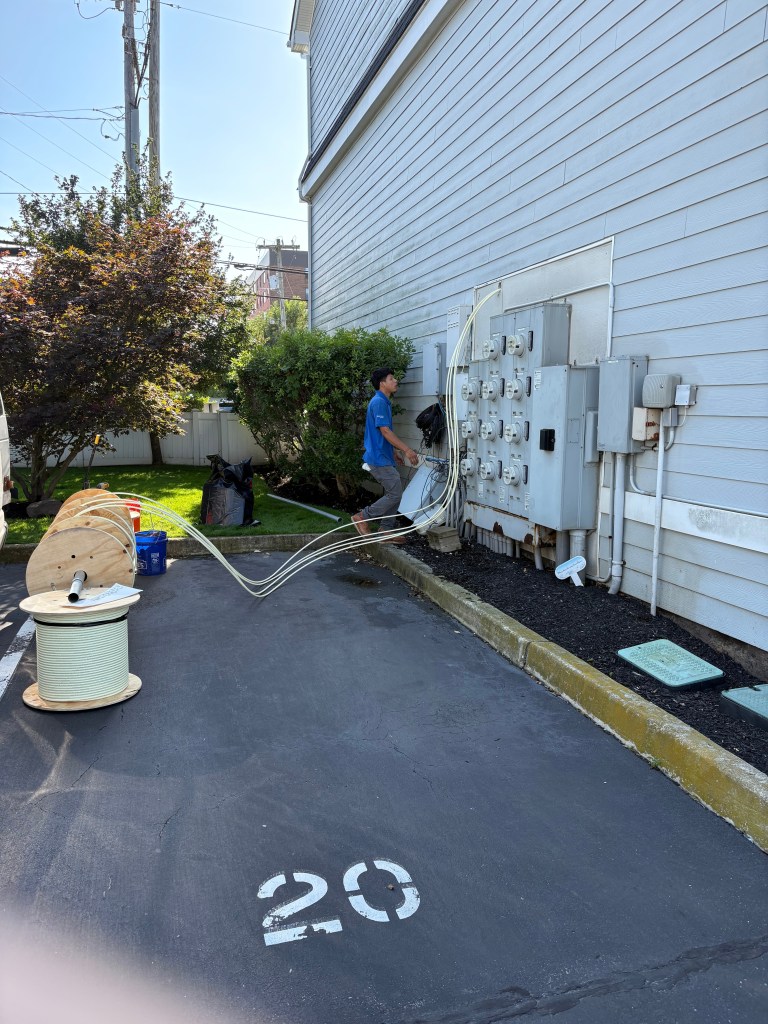 Installing new siding at Shoreline requires removal of all wires and cables that currently run exposed on the side of the buildings. To allow the removal of all Wifi and TV service cables from the outside of the buildings, Verizon will be running new microducts inside of the buildings. This will eliminate the need to penetrate the new Hardi Plank siding to access the units and will also simplify upgrading services to fiber optic cable without service interruption.